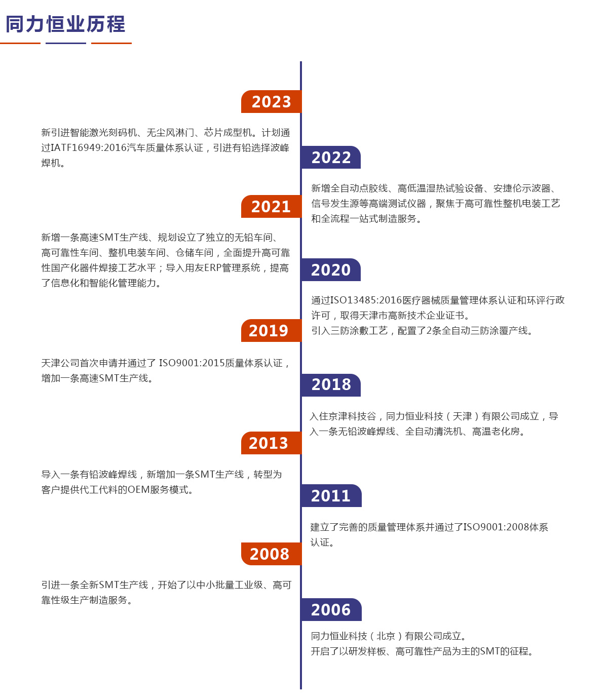 同力恒業(yè)科技成立于2006年,專業(yè)從事電子制造服務(wù)(EMS),專注于為客戶提供產(chǎn)品開發(fā)、工藝設(shè)計、物料配套、精密貼裝、插件焊接、三防涂敷、整機電裝、測試?yán)匣约鞍b運輸、售后維修等整個供應(yīng)鏈解決方案。公司定位于高可靠性及中高端產(chǎn)品電子制造服務(wù),在通訊導(dǎo)航、儀器儀表、醫(yī)療設(shè)備、汽車電子等領(lǐng)域具有豐富的一站式制造服務(wù)經(jīng)驗。
